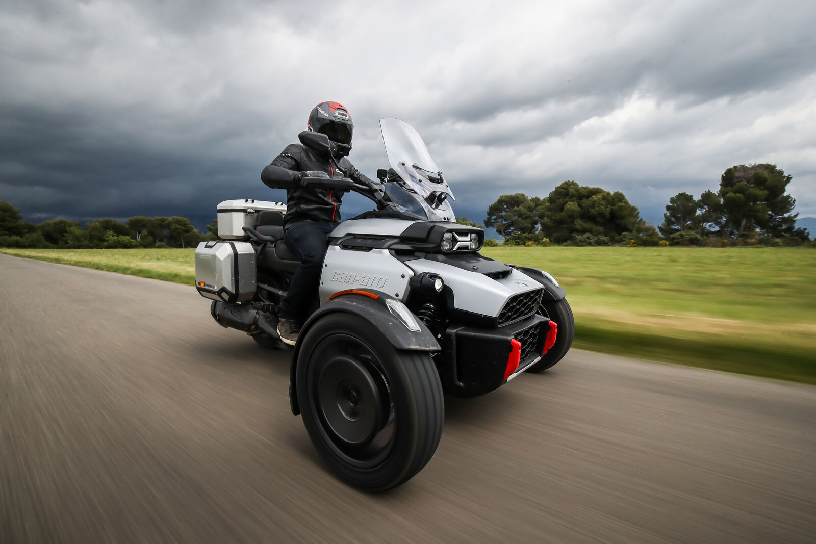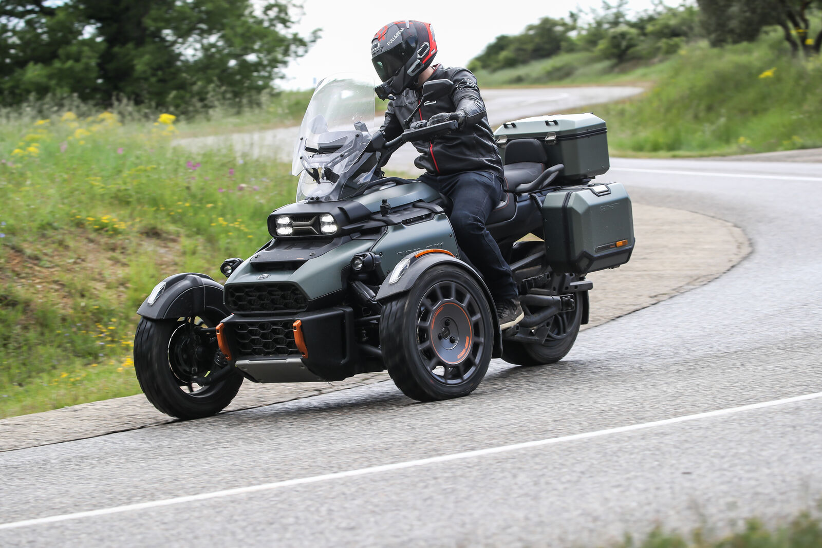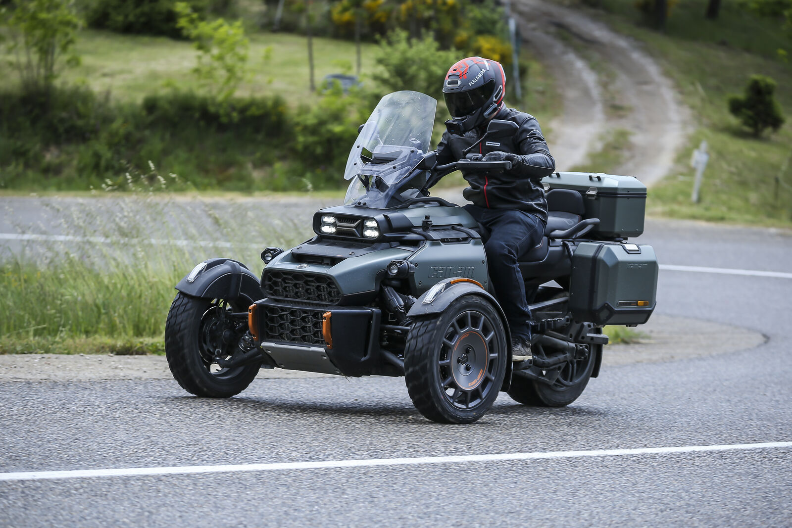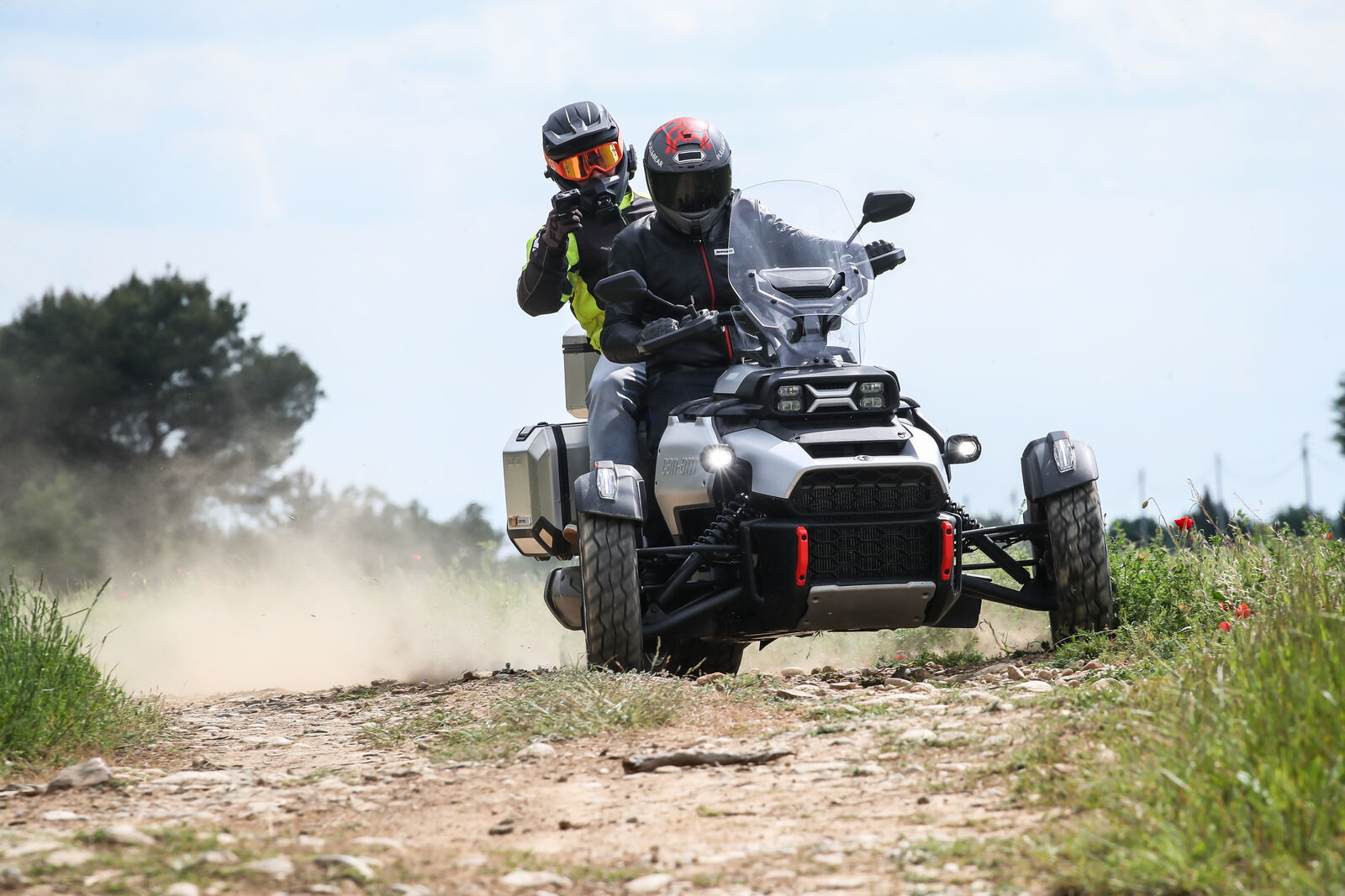 Die Canyon Redrock wurde vor allem für den Offroad-Einsatz konzipiert. Dabei bietet sie eine beeindruckende Bodenfreiheit und einen erhöhten Federweg, was das Fahren auf unbefestigten Wegen erheblich erleichtert. Während der Testfahrten in Frankreich zeigte sich schnell, dass die Canyon Redrock in der Lage ist, sich durch schwieriges Terrain zu kämpfen, ohne dabei den Fahrspaß zu verlieren. Allerdings gibt es auch Herausforderungen: Das Fahrverhalten auf der Straße ist nicht so agil wie bei anderen Modellen, was sich besonders in Kurven bemerkbar macht. Die Stabilitätskontrolle kann das Beschleunigen in engen Kurven behindern, was für erfahrene Fahrer frustrierend sein kann. Hier zeigt sich der größte Unterschied zu den sportlicheren Can-Am Modellen wie dem Spyder oder dem Ryker, die auf der Straße deutlich spielerischer sind.