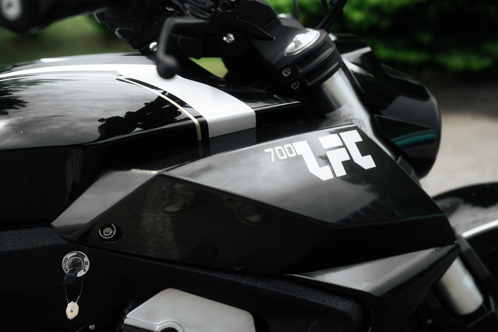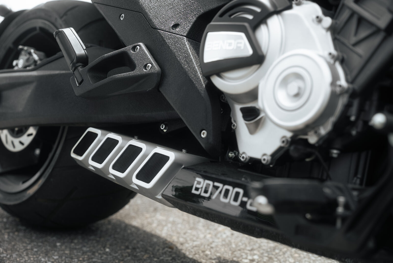 Der Vierzylindermotor der Benda LFC 700 kommt mit einer Leistung von 77 PS bei 10.500 Umdrehungen und einem maximalen Drehmoment von 60 Nm bei 8.600 Umdrehungen. Diese Leistungsdaten sind für einen Cruiser eher ungewöhnlich und versprechen ein anderes Fahrgefühl als die typischen V-Motoren, die man in dieser Kategorie gewohnt ist. Die Kombination aus einem 17-Liter-Tank und einem Leergewicht von 287 Kilogramm sorgt für eine solide Reichweite, ohne dass man sich über häufiges Tanken Gedanken machen muss. Die Gasannahme ist direkt und ermöglicht eine präzise Kontrolle, was beim Fahren auf Landstraßen zu einem sportlichen Erlebnis führt. Allerdings könnte die Übersetzung der Gänge für einige Fahrer etwas länger sein, um auch bei höheren Geschwindigkeiten mehr Fahrfreude zu bieten. Die Benda LFC 700 ist A2-konform, was bedeutet, dass auch weniger erfahrene Fahrer oder solche mit A2-Führerschein in den Genuss dieses besonderen Cruisers kommen können.