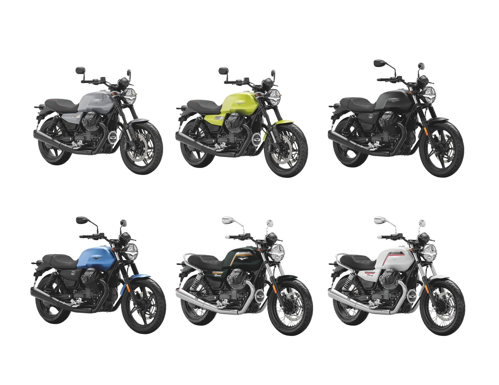 V7 Sport – und Grigio Lario in Pastelloptik erhältlich. Die V7 Stone präsentiert sich in den markanten Tönen Blu Profondo und Nero Ruvido. Ein neu gestaltetes Logo auf den Seitenteilen und die dynamischen Sechs-Speichen-Gussräder ergänzen das reduzierte Design ebenso wie der schlichte Sattel. Die V7 Special bleibt dem Erbe des Originalmodells treu und verbindet klassischen Charme mit eleganter Raffinesse. Mit zahlreichen verchromten Details und zwei auffälligen Hochglanzfarben – Nero Smeraldo und Bianco 1969 – strahlt sie zeitlose Eleganz aus. Polierte Speichenräder mit schwarzen Naben runden den Look ab. Darüber hinaus beeindruckt sie mit gefrästen Zylinderkühlrippen und einem klassich-gerippten, schwarzen Sattel.