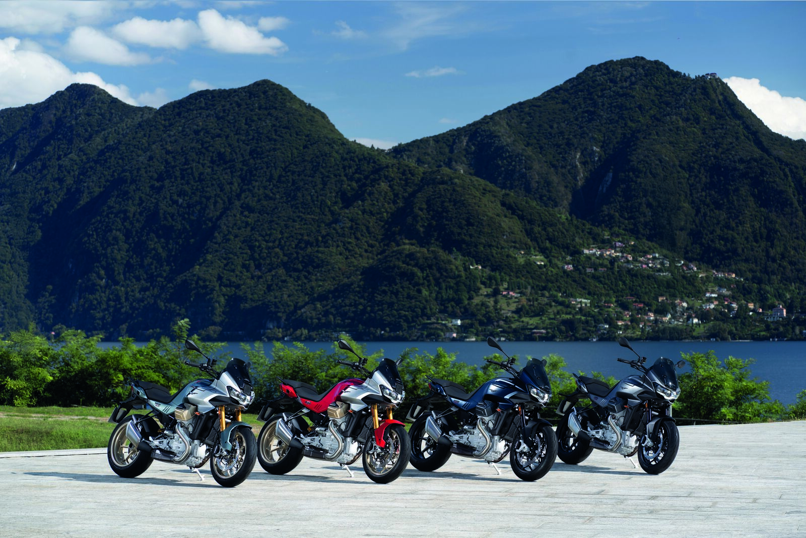 den Vorgängermodellen wurde auch das Getriebe sowie der Kühlerschutz, der sich optisch nahtlos ins Design einfügt und bei jeder Fahrt zuverlässigen Schutz vor Steinschlägen bietet, überarbeitet. Die neue Moto Guzzi V100 Mandello S richtet sich an anspruchsvolle Fahrer:innen, die Wert auf modernste Technik und maximalen Komfort legen. Sie verfügt über eine semiaktive Öhlins Smart EC 2.0-Federung, ein bi-direktionales Quick Shift-Getriebe, Heizgriffe, ein TPMS-Reifendruckkontrollsystem sowie die Moto Guzzi MIA-Multimedia-Plattform. Neu hinzugekommen ist nun das PFF Rider Assistance Solution-System (Radar-System), das die Premium-Ausstattung noch umfassender macht. Optisch unterstreichen zweifarbige Lackierungen in Verde Ghiaccio oder Rosso Lava, kombiniert mit goldfarbenen Felgen, Zylinderkopfddeckeln und Gabeln, den exklusiven Anspruch der S-Version. Die Moto Guzzi V100 Mandello ist 2025 in zwei neuen metallisch-matten Farbvarianten erhältlich: Blu Oceano und Grigio Titanio, die ihr markantes Erscheinungsbild betonen, ergänzt