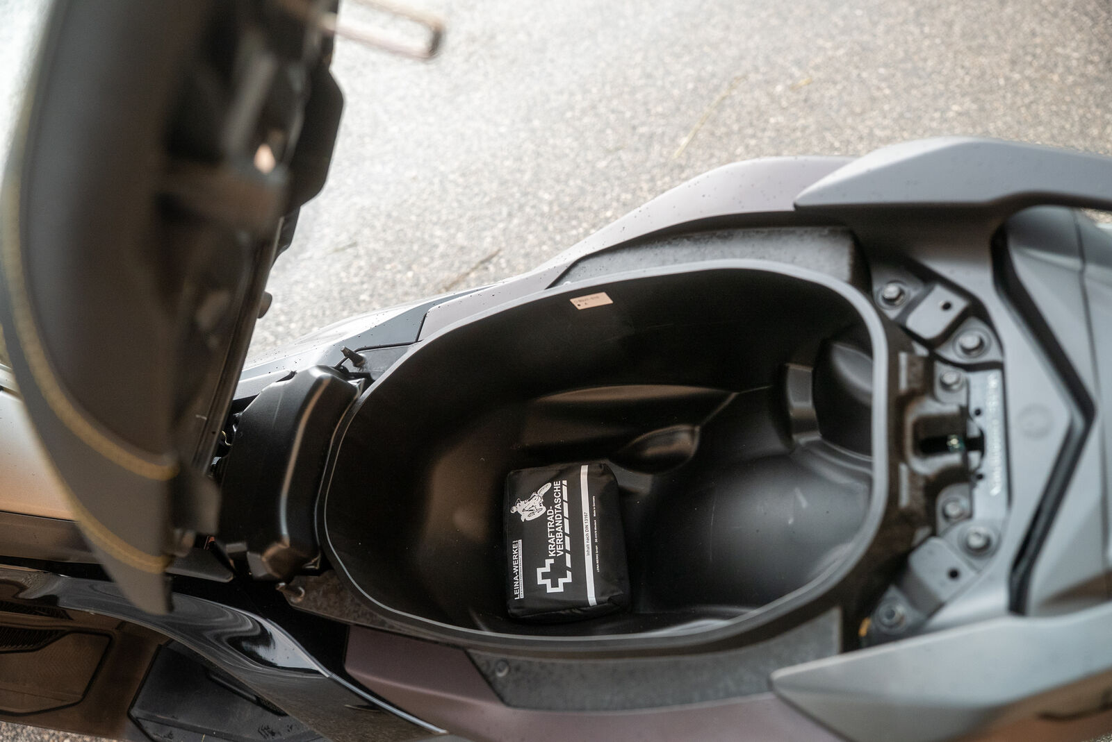 Was den Yamaha NMAX 125 Tech Max von anderen Rollern abhebt, ist das hochwertige Premium-Feeling, das er vermittelt. Mit Features wie einem TFT-Display, einer Traktionskontrolle, Keyless-Go und einer Start-Stopp-Automatik wird das Fahrerlebnis auf ein neues Level gehoben. Besonders hervorzuheben ist das USB-C-Ladefach, das unterwegs für ausreichend Energie sorgt, um dein Handy zu laden. Der NMAX bietet außerdem ein absperrbares Staufach, das ausreichend Platz für einen Integralhelm bietet, aber auch als Stauraum für kleinere Einkäufe genutzt werden kann. Neben der technischen Ausstattung überzeugt der Roller durch seine edle Verarbeitung, LED-Lichttechnik und sportliche Optik, die ihn in der Stadt wirklich hervorstechen lässt.