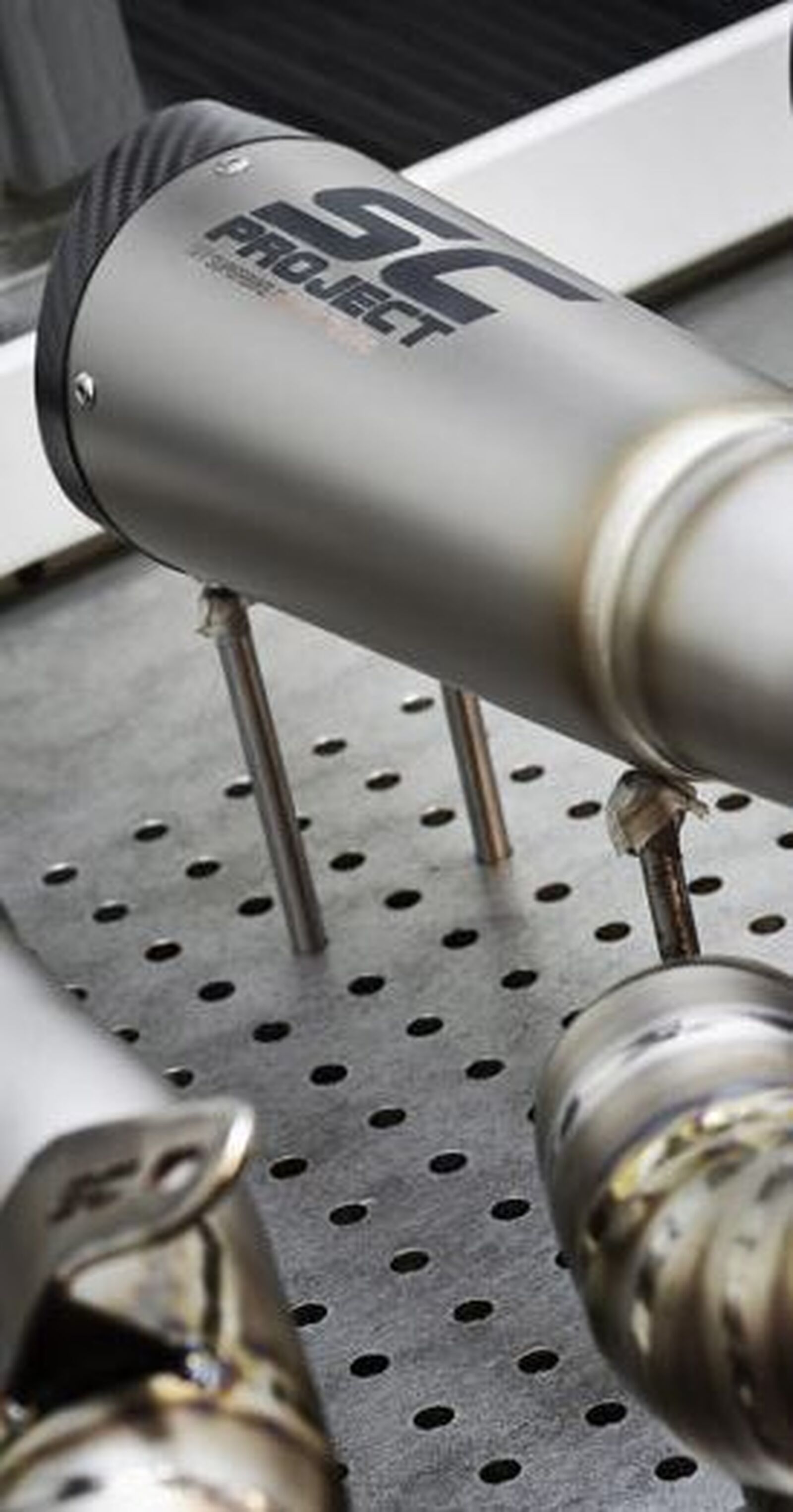 Das Gehäuse des zeitlos gestylten Oval besteht aus Kohlefaser. Er sorgt für einen Leistungsgewinn von 1 PS bei 7.300 U/min sowie ein Drehmomentplus von 1,1 Nm bei 4.500 U/min und ist gerade mal halb so schwer wie die Serienversion. Beide Slip-on-Endschalldämpfer entsprechen natürlich in allen Belangen der Norm Euro 5+. Und auch wer eine 500er Honda mit Hauptständer besitzt, kann aufatmen, denn natürlich sind die SC-Project Slip-on-Endschalldämpfer damit kompatibel. Auf unserem Kontinent sind die beiden Neuen ab sofort verfügbar. Der SC1-S wird sowohl in Titan- als auch in Kohlefaserausführung in Deutschland und Österreich zur unverbindlichen Preisempfehlung von 490,00 € angeboten, der Oval kostet 450,00 €. Schweizer Kunden zahlen für den SC1-S 660,00 CHF und für den Oval 610,00 CHF.
