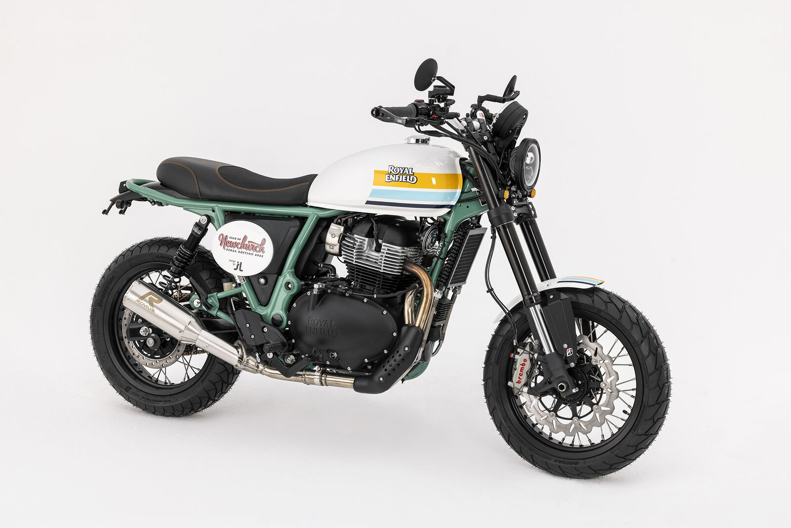 Royal Enfield und LSL-Motorradtechnik präsentierten bei der finalen Edition des Club of Newchurch Festivals (15.-22. Juni) einen Umbau der Royal Enfield Bear 650, der am Freitagabend auf der Mainstage vorgestellt wurde. Das Custom Bike, das auf die Supermoto-Klasse zugeschnitten wurde, erhielt umfassende technische und optische Modifikationen: ein 17"-Vorderrad, ein verlängertem Radstand, angepasste Fußrasten für sportlichere Fahrhaltung sowie eine neue Lackierung und Halterungen für Schutzbleche, Blinker und LED-Scheinwerfer. Unterstützt wurde das Projekt von Partnern wie REMUS, HYPERPRO und Bridgestone. Jochen Schmitz-Linkweiler von LSL-Motorradtechnik, der die Motorradumbauten prägte, zeigte mit diesem Projekt seine Begeisterung für Landstraßenfeger. Royal Enfield bot im Rahmen des Festivals Probefahrten mit aktuellen Modellen an, wobei alle A2-konform sind.