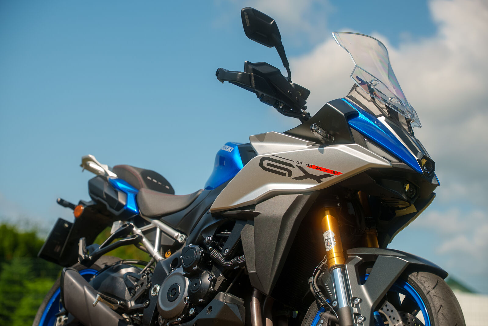 Die GSX-S1000 GX beeindruckt nicht nur durch ihren Motor, sondern auch durch ein semi-elektronisches Fahrwerk von Showa, das sowohl vorne als auch hinten verbaut ist. Dieses System erkennt den aktuellen Lastzustand und passt die Federung automatisch an. Du hast die Wahl zwischen drei Einstellungen: weich, mittel und hart. Egal ob du mit Beifahrer oder Gepäck unterwegs bist, die Federung passt sich den Gegebenheiten an und sorgt für ein harmonisches Fahrerlebnis. Das Fahrverhalten des Motorrads ist neutral und bietet dir das Vertrauen, das du in jeder Situation benötigst. Egal ob enge Kurven oder gerade Strecken – die GSX-S 1000 GX meistert jede Herausforderung mit Bravour, ohne dass du dich um unerwartete Reaktionen sorgen musst.