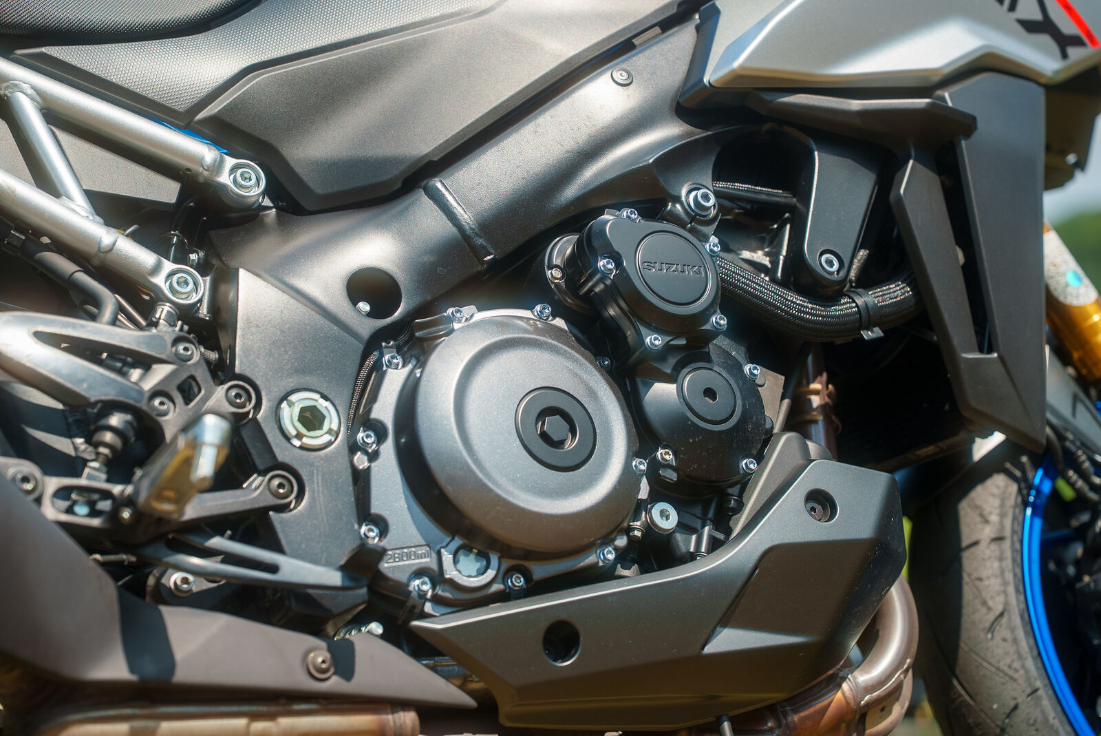 Im Herzen der GSX-S 1000 GX schlägt der unverwechselbare K5-Motor – ein flüssigkeitsgekühlter 999cc-Vierzylinder mit 142 PS bei 11.000 U/min und einem Drehmoment von 106 Nm bei 9.250 U/min. Dieser Motor ist bekannt für seine Flexibilität und Leistungsentfaltung. Bereits bei niedrigen Drehzahlen zieht die GSX-S1000 GX souverän an und zeigt ab 4.000 U/min, was in ihr steckt. Besonders beeindruckend ist die Leistungsentfaltung: Der Motor zieht bis fast 12.000 U/min ohne Anzeichen von Schwäche. Die Fahrfreude ist unvergleichlich und bietet sowohl auf der Autobahn als auch auf kurvigen Landstraßen ein erstklassiges Erlebnis. Dies wird durch die Kombination mit einer anpassungsfähigen Federung unterstützt, die sowohl sportliches Fahren als auch entspanntes Cruisen ermöglicht.