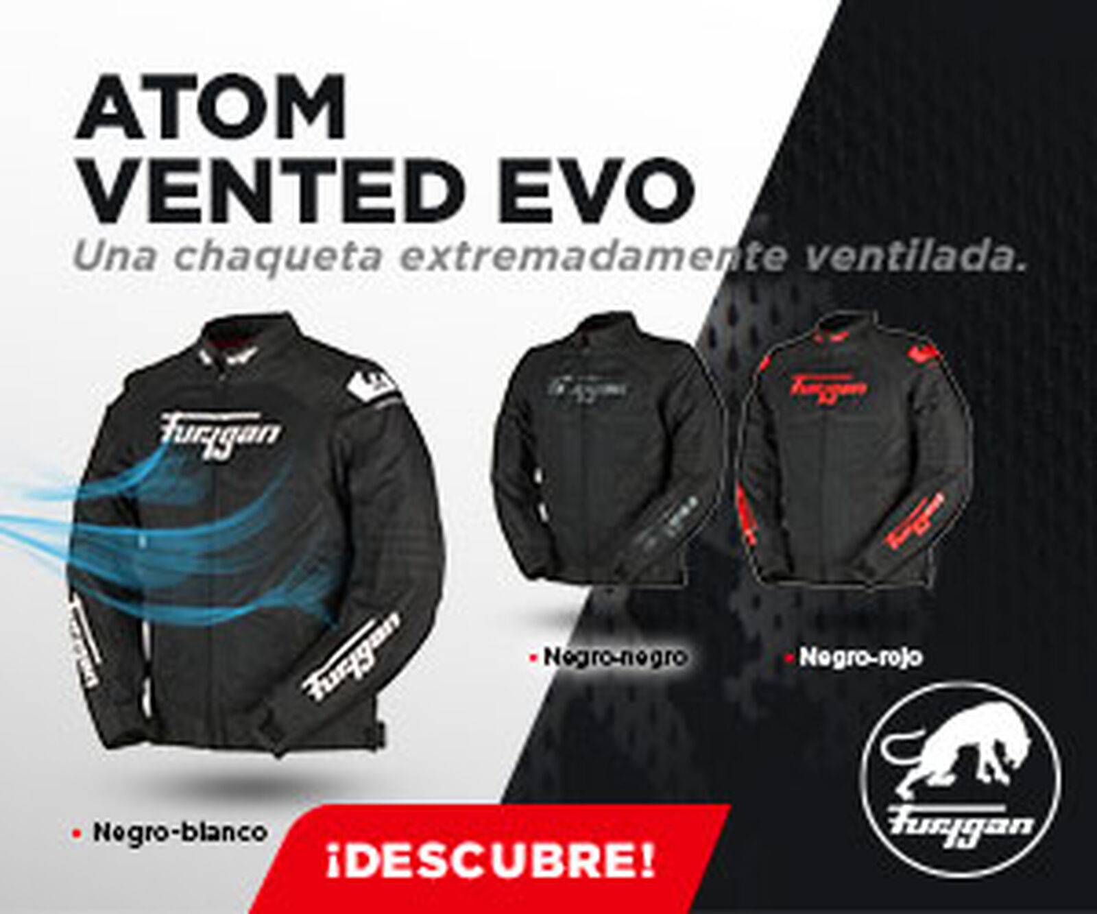 Die Ultra Spark ist äußerst vielseitig und verfügt über einen voll belüfteten Aufbau, der durch zwei herausnehmbare Innenfutter und ein In&Out-System ergänzt wird. Dabei macht sie keine Kompromisse in Sachen Stil – ihr mutiges Design ist unverkennbar Furygan. Diese Jacke ist nicht nur warm sowie wind- und wasserdicht, sondern auch mit Furygans Skin Protect Futter, D3O® Aufprallschutz und einer Tasche für einen Rückenprotektor ausgestattet. Diese Sicherheitsmerkmale zeichnen auch die Atom-Jacke aus. Dank ihrer strategisch platzierten, perforierten Bereiche und großer Mesh-Einsätze kombiniert sie Schutz mit hervorragender Luftzirkulation.