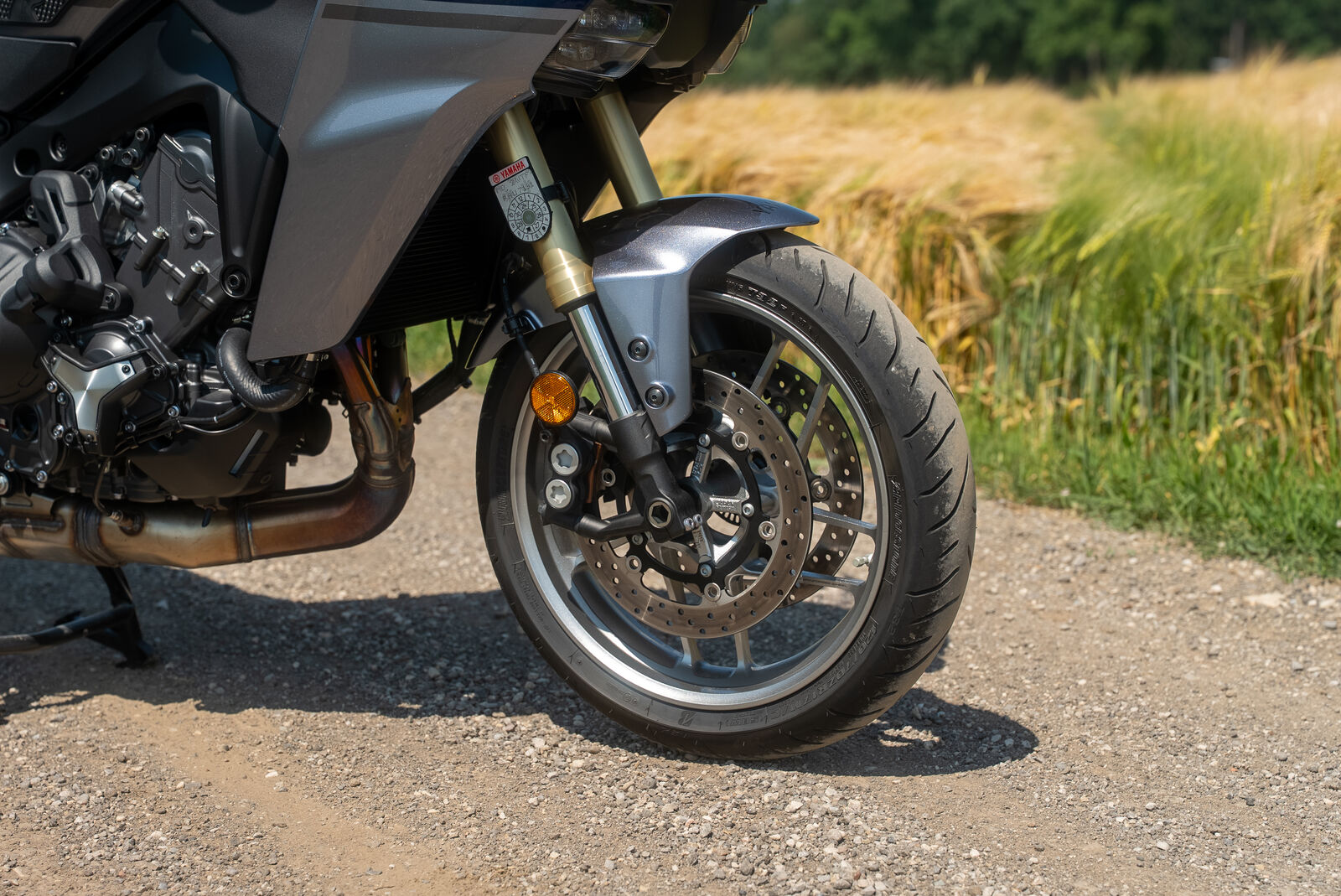 Die Yamaha Tracer 9 GT+ verfügt über ein semi-aktives Fahrwerk, das mit KYB-Gabeln vorne und einem Monoshock hinten ausgestattet ist. Dieses Fahrwerk kann manuell eingestellt werden, während andere Parameter elektronisch gesteuert werden. Ob du es bequem oder sportlich magst, das Fahrwerk lässt sich an deine Bedürfnisse anpassen. Genieß die sanften Federungen bei gemütlichen Fahrten oder stelle es straffer ein, wenn du die Kurven sportlich nehmen möchtest. Die Agilität der Tracer 9 GT+ ist beeindruckend und gibt dir ein hervorragendes Gefühl für die Straße. Egal ob du über Kopfsteinpflaster oder unebene Straßen fährst, die Tracer gleicht alles aus und sorgt für ein angenehmes Fahrgefühl.