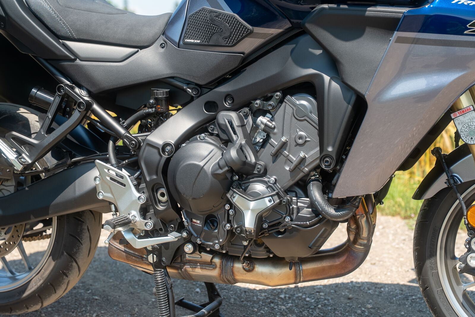 Der CP3-Motor ist ein 3-Zylinder mit 890cc, der 119 PS bei 10.000 Umdrehungen pro Minute liefert und mit einem Drehmoment von 93 Nm bei 7.000 Umdrehungen ordentlich Vortrieb bietet. Diese Motorenkonfiguration bietet das Beste aus beiden Welten – die Smoothness eines 4-Zylinders und die Leistungsstärke eines 2-Zylinders. Du wirst feststellen, dass der Motor bei niedrigen Drehzahlen von 3.000 Umdrehungen gut ansprechbar ist und ab 4.000 Umdrehungen richtig Spaß macht. Der Triebwerk zieht kraftvoll und macht jede Fahrt zu einem Erlebnis, sei es auf der Autobahn oder in kurvenreichen Landschaften. Ein echtes Highlight ist die entspannte Fahrweise, die dir erlaubt, das Motorrad auch bei niedrigen Drehzahlen gelassen zu bewegen, ohne dass du ständig hochdrehen musst.