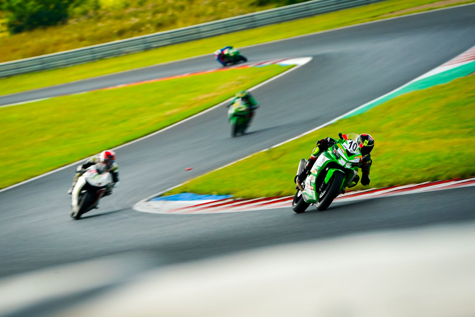 Das vierte Rennen des Kawasaki ZX-4RR Cups im tschechischen Most bot den Zuschauern alles, was den Motorsport ausmacht: wechselhaftes Wetter, neue Bestzeiten und packende Zweikämpfe bis zur Ziellinie. Nachdem das Wochenende zunächst von starkem Regen geprägt war und das erste Qualifying unter schwierigen Bedingungen stattfand, konnten die Fahrer nur in kurzen, trockenen Phasen ihre Setups auf Slicks testen. In diesem anspruchsvollen Umfeld setzte sich Ben Wiegner (#26) mit einer fehlerfreien Runde an die Spitze und sicherte sich die Pole Position. Das zweite Qualifying wurde durch Dauerregen zerstört, sodass das Ergebnis von Q1 für die Startaufstellung entscheidend war. So ging Wiegner als Favorit ins Rennen. Bereits im ersten Rennen zeichnete sich ein spannendes Duell ab, als er sich mit Felix Kauertz (#37) und Aaron Thomas Müller (#10) einen erbitterten Kampf um die Spitzenplätze lieferte.