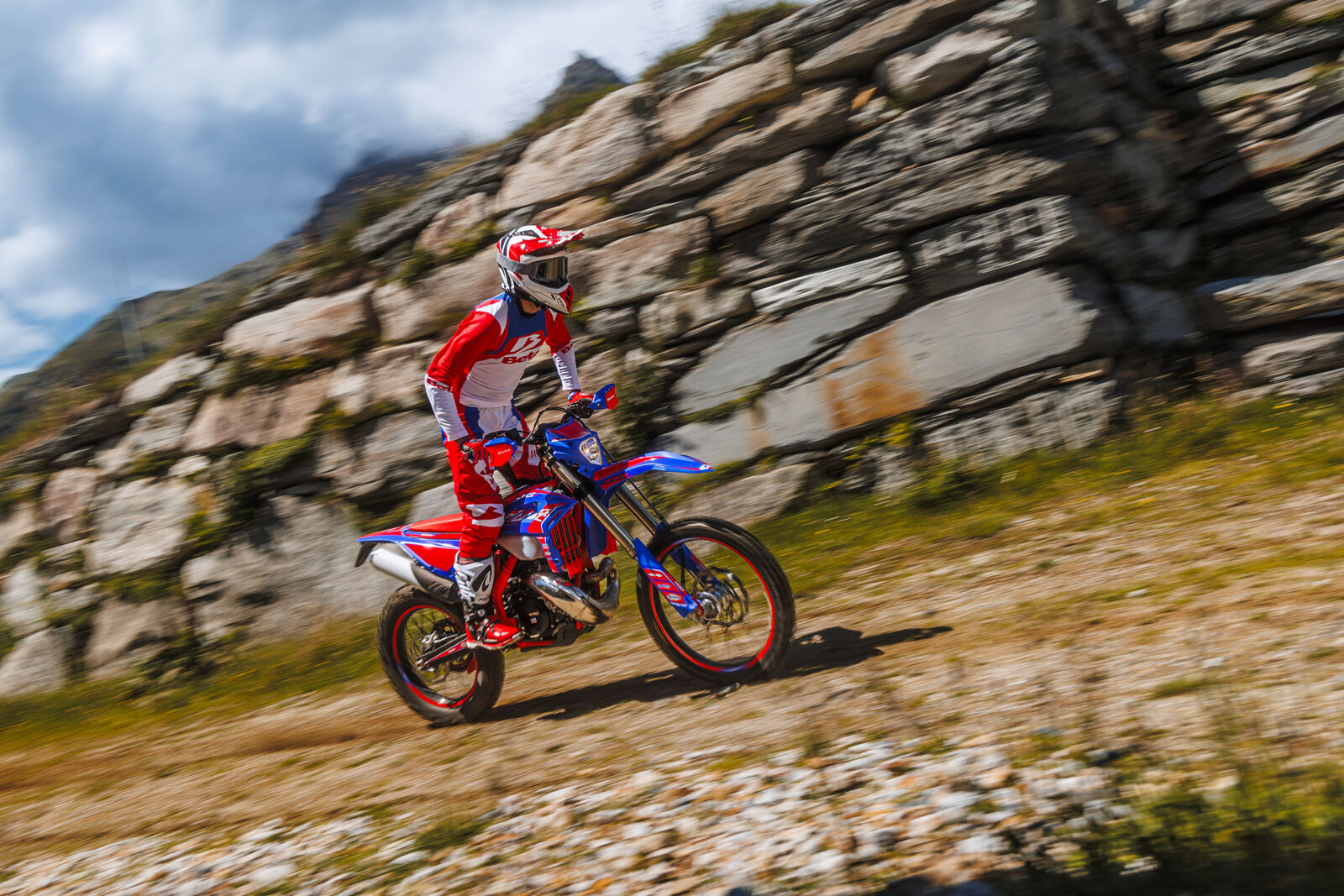 Die 2-Takter (2T) der MY 2026 Reihe erhalten differenzierte Upgrades: Bei der RR Race 125 2T wurde ein komplett neues, robustes Getriebe eingeführt, das präzise Schaltvorgänge auch bei hoher Belastung ermöglicht – dieses kommt auch bei der 200 2T zum Einsatz. Letztere profitiert zusätzlich von einer überarbeiteten Übersetzung zwischen Primär- und Sekundärantrieb, was die strukturelle Stabilität erhöht, ohne das Fahrerlebnis zu verändern. Die RR Race 300 2T übernimmt ebenfalls Lager- und Getriebemodifikationen der 250er. Die 4-Takt-Modelle (4T) aller Hubraumklassen erhalten ein neues Motor-Mapping, das die Leistungsentfaltung gleichmäßiger und effizienter gestaltet. So gelingt eine verbesserte Kontrolle auch bei schwierigen Bedingungen, wobei Beta klar den Fokus auf nutzbare, praxistaugliche Performance legt.