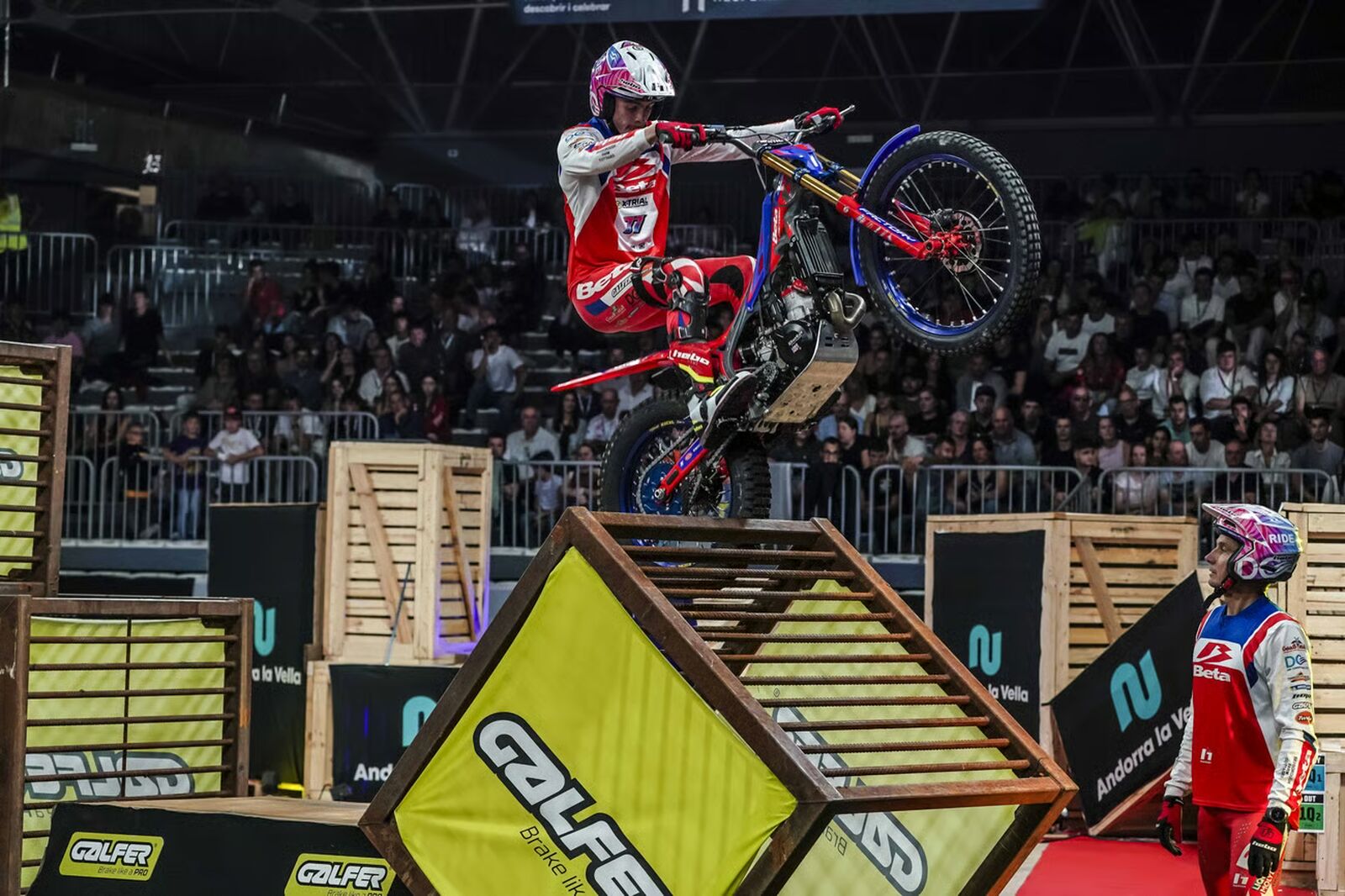 Die Hallen-Trial-Weltmeisterschaft 2026 startete in Andorra la Vella mit einem starken Auftritt der Beta-Fahrer Harry Hemingway und Matteo Grattarola. Hemingway beeindruckte bei seinem Debüt in der Königsklasse mit einem hervorragenden 4. Platz. Besonders in der zweiten Qualifikationsrunde zeigte er mit Rang 1 sein großes Talent und äußerte sich zufrieden mit seiner Leistung, obwohl die Sektionen sehr technisch waren. Der amtierende TR2-Weltmeister wird dank seines Titels an der Hälfte der Saison teilnehmen und konnte bereits bei seinem ersten Lauf ein Ausrufezeichen setzen. Weniger Glück hatte Matteo Grattarola, der nach einem unglücklichen Sturz nur den 7. Platz belegte. In einer der anspruchsvollsten Passagen klemmte sich sein Fuß zwischen Motorrad und Hindernis ein, wodurch eine bessere Platzierung verhindert wurde. Glücklicherweise blieb er unverletzt und ist motiviert, beim nächsten Lauf zurückzuschlagen. Das Beta Factory Offroad Trial Team wird am 25. Oktober 2025 beim zweiten WM-Lauf in der Madrid Arena erneut antreten.