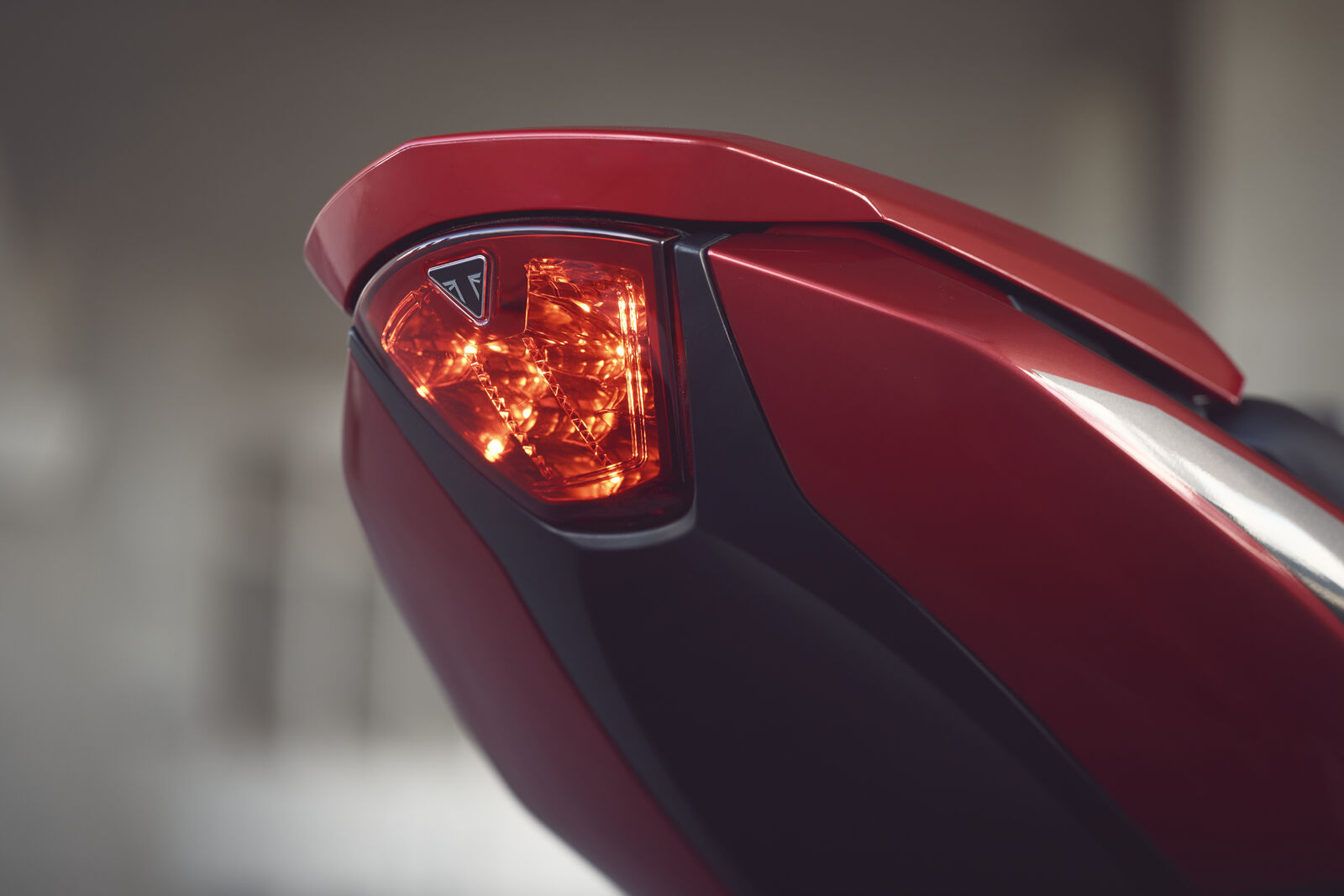 Optisch bleibt die Trident 800 der Triumph-DNA treu: muskulös, minimalistisch und kompromisslos modern. Der kantige 14-Liter-Tank, das schlanke Heck und die goldfarbenen Aluminiumräder verleihen ihr eine markante, sportliche Präsenz. Drei Farbvarianten – Ash Grey/Diablo Red, Carnival Red/Graphite und Jet Black – unterstreichen ihren individuellen Charakter. Wer seine Maschine weiter veredeln möchte, kann aus einem breiten Zubehörprogramm wählen, darunter ein Akrapovič-Endschalldämpfer aus Titan mit Carbon-Endkappe. Mit einer zweijährigen Garantie ohne Kilometerbegrenzung und langen Wartungsintervallen von 16.000 Kilometern ist die Trident 800 auf lange Fahrten ausgelegt.