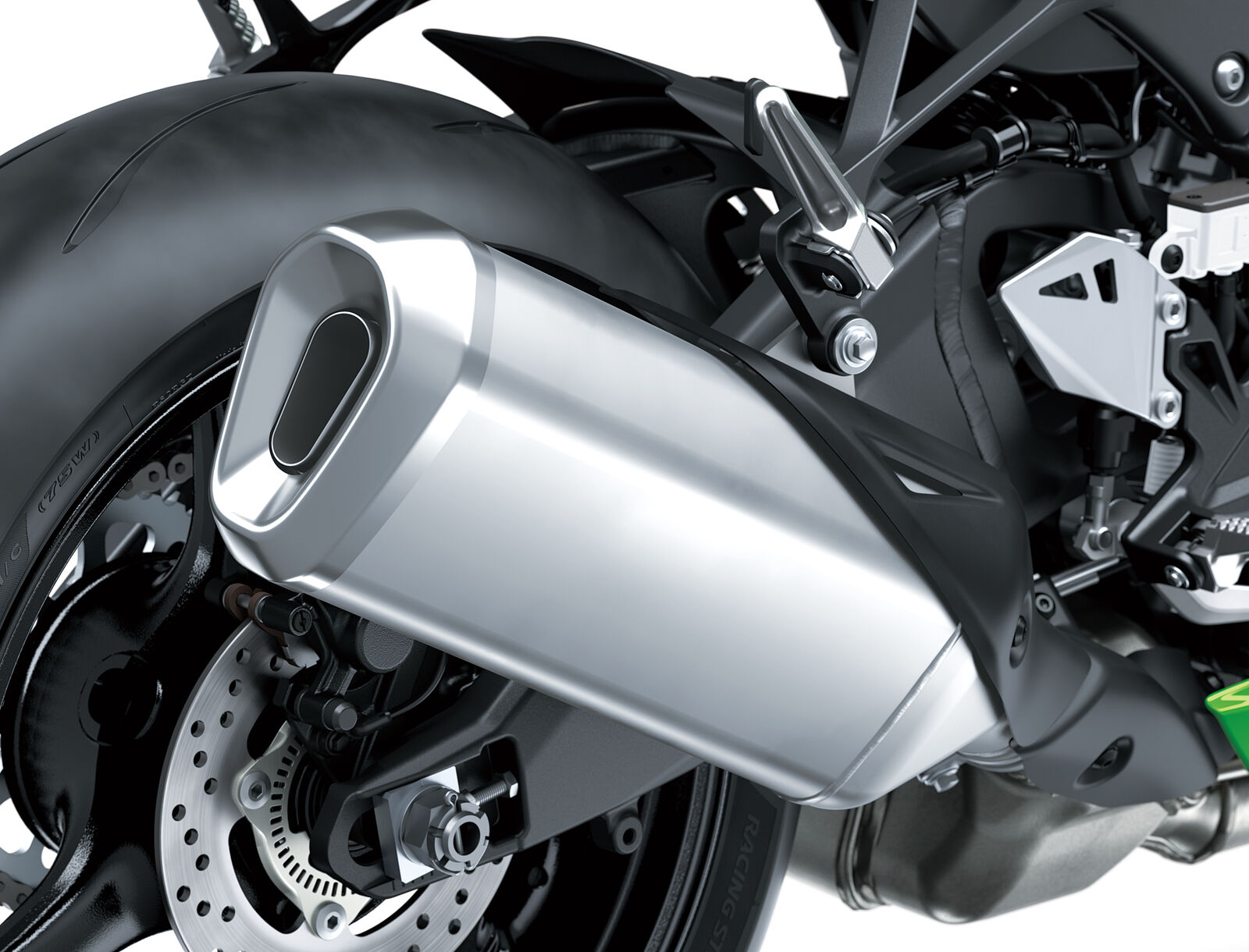 Auch in Sachen Bremsleistung und Elektronik wurde nachgelegt: Zwei M50-Monobloc-Bremssättel von Brembo mit 330-mm-Scheiben und Radialpumpen-Hauptbremszylinder bieten maximale Verzögerung. Das volldigitale 5-Zoll-TFT-Farbdisplay ersetzt das Vorgängermodell und erlaubt über die Rideology-App* die kabellose Verbindung mit dem Smartphone. Dadurch können Fahrer umfassende Einstellungen vornehmen und auf neue Funktionen wie Turn-by-Turn-Navigation und Sprachsteuerung zugreifen. Rennstreckenorientierte Features der ZX-10RR, wie Pankl-Pleuel, Kolben und Stahlflex-Bremsleitungen, bleiben ebenso erhalten wie der einstellbare Öhlins-Lenkungsdämpfer im Twin-Tube-Design, der bei beiden Modellen serienmäßig verbaut ist.