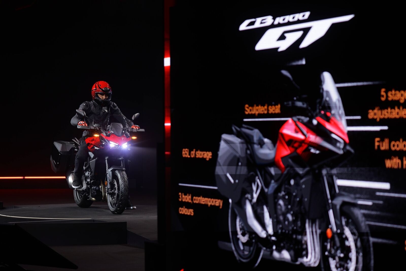 Der Prototyp V3R 900 mit E-Kompressor zeigt Hondas Fortschritte in der Motorentechnologie. Der V3-Motor bietet hohes Drehmoment schon bei niedrigen Drehzahlen, vergleichbar mit einem 1.200-cm³-Motor, und erfüllt zugleich Umweltstandards. Das asymmetrische Bodywork und das neue „Flagship WING“-Tankemblem setzen Designakzente. Gleichzeitig wird die E-Clutch-Technologie für fünf weitere Modelle verfügbar: XL750 Transalp, CB750 Hornet, NX500, CBR500R und CB500 Hornet. Das System ermöglicht schaltfreies Fahren, sanfte Gangwechsel und optimalen Fahrspaß, insbesondere für Einsteiger und A2-Führerschein-Inhaber, ohne auf die Nutzung des Kupplungshebels verzichten zu müssen.