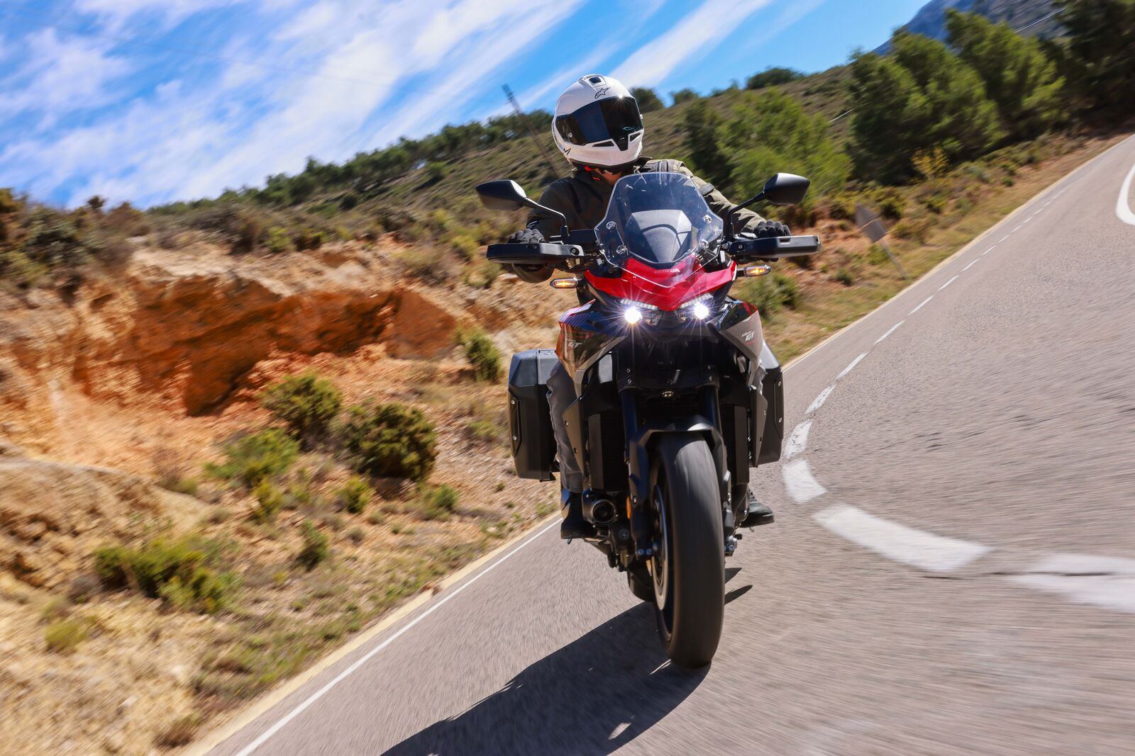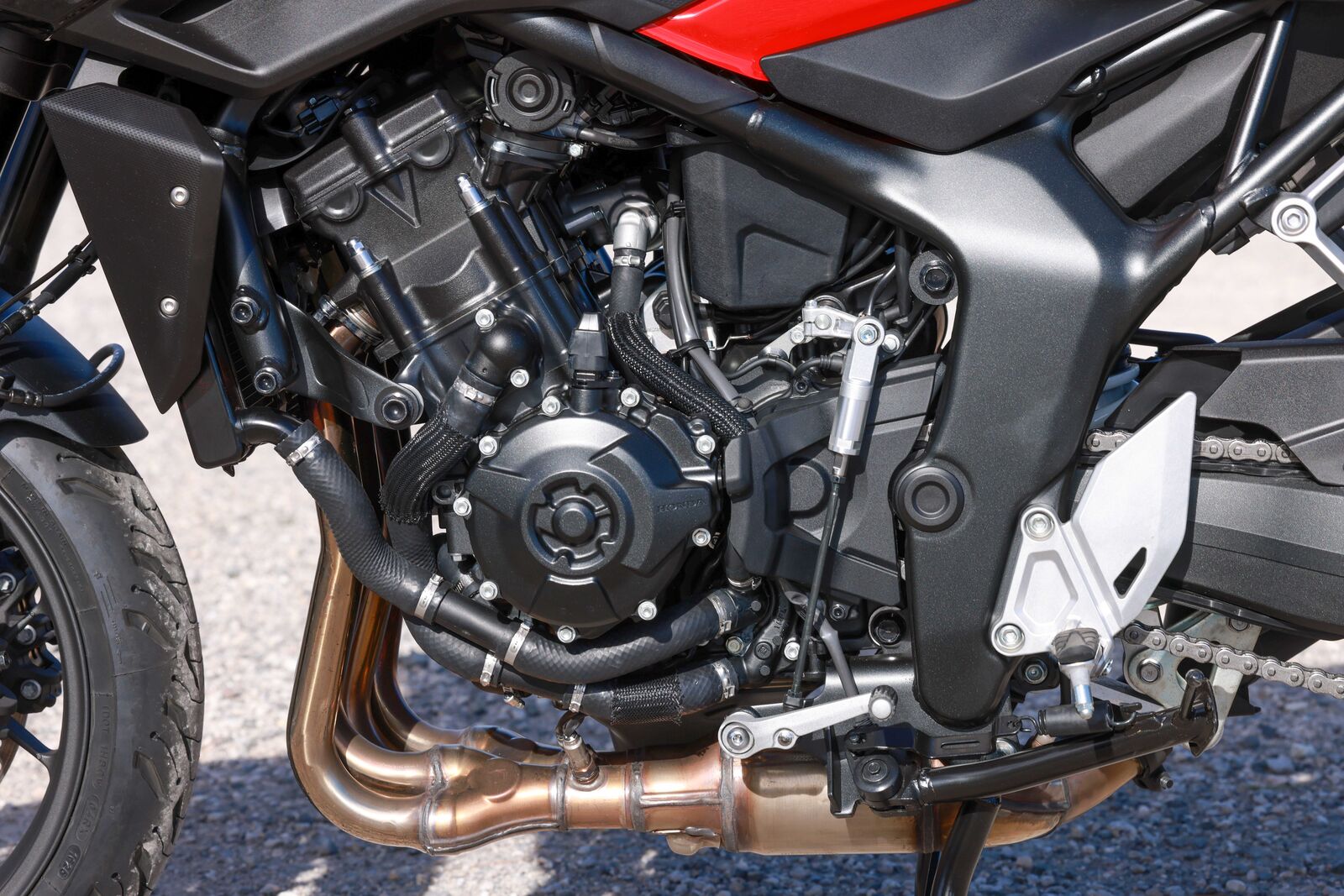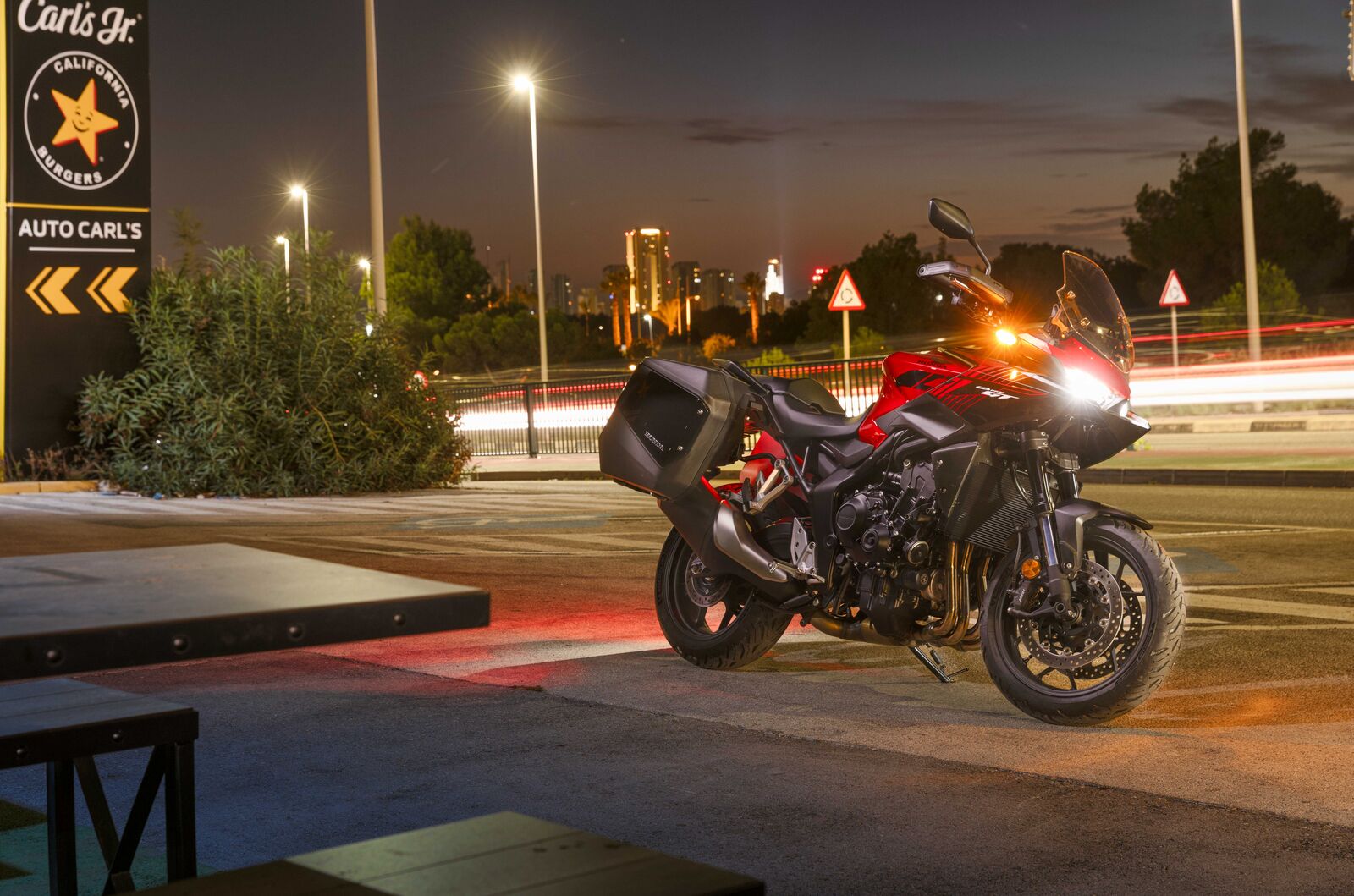 Die Honda GT ist mit einem leistungsstarken Motor ausgestattet, der 150 PS bei 11.000 Umdrehungen und ein Drehmoment von 102 Nm bei 8.750 Umdrehungen liefert. Der Motor basiert auf der Fireblade von 2017, wurde jedoch für die GT sanfter abgestimmt. Dies ermöglicht eine geschmeidige Gasannahme dank des überarbeiteten Throttle-by-Wire-Systems. Doch das hat auch seine Tücken: Um die volle Leistung zu entfalten, muss der Motor hochgedreht werden, was sich negativ auf den Spritverbrauch auswirkt. Honda gibt einen Verbrauch von rund 6 Litern an, doch realistisch betrachtet sind es eher 7 bis 8 Liter, besonders wenn du sportlich unterwegs bist. Diese hohe Verbrauchsrate führt zu einer geringeren Reichweite von etwa 340 km, was für einen Sporttourer nicht optimal ist.