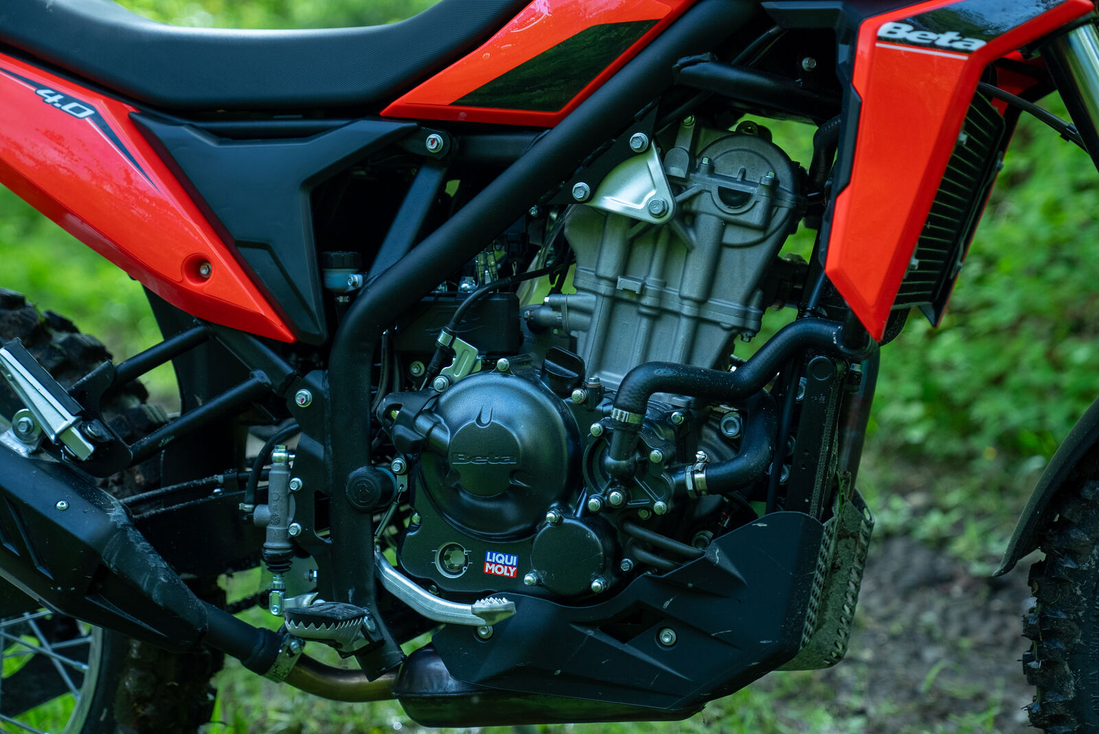Die Urversion der Beta Alp 4.0 wurde 2018 aufgrund immer strenger werdender Abgasnormen vom Markt genommen. Jetzt haben die Techniker von Beta Motor auf Basis dieses Motorrads ein vollkommen neues Modell entwickelt. Beginnen wir mit dem Herzstück des Bikes: dem Motor. Die Beta Alp 4.0 wird von einem wassergekühlten Vierventileinzylindermotor mit 350cc angetrieben. Der äußerst sparsame Antriebsstrang leistet 35 PS bei 9500 Umdrehungen pro Minute. Dank des geringen Verbrauchs von nur 3,5 Liter und dem 11-Liter-Tank ist eine Reichweite von gut 300 Kilometern möglich. Das erlaubt auch ausgedehnte Touren abseits von Tankstellennetzen.