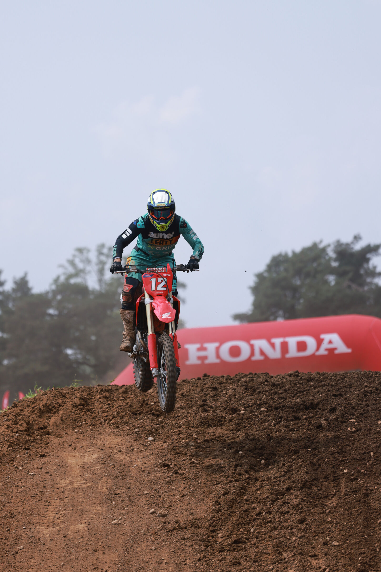 Der Aluminiumrahmen der neuen CRF 250 und 450 hat eine umfassende Überarbeitung erfahren. Ingenieure aus Japan haben sich intensiv mit der Verbesserung der Dämpfungs- und Montagepunkte beschäftigt, um das Handling der Bikes zu optimieren. Bei meiner Unterhaltung mit einem Ingenieur wurde mir erklärt, dass das Ziel war, ein besseres Kurvenverhalten zu erreichen. Und ich kann bestätigen, dass die Hondas in den Kurven absolut stabil sind, ohne das gefürchtete Kippverhalten, das bei vielen anderen Bikes vorkommen kann. Das sagt sogar MXGP-Fahrer Valentin Goulon, der die Bikes direkt mit dem 24er Modell verglichen hat.