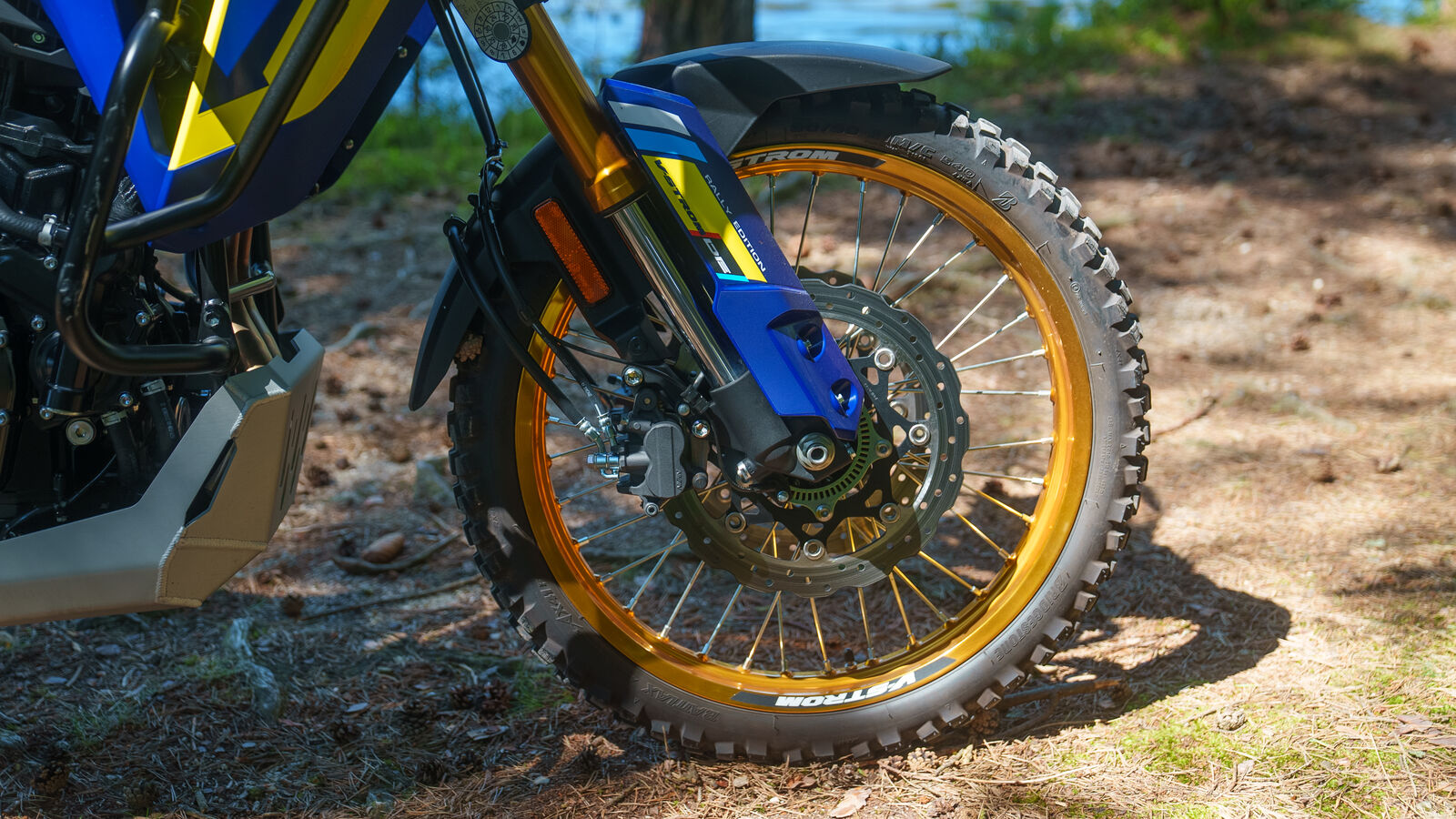 Das Herzstück der V-Strom 800 DE ist ein kraftvoller Parallel-Zweizylinder mit 270 Grad Zündversatz. Mit 776 Kubik und einer Leistung von 84 PS bei 78 Newtonmetern Drehmoment bietet dieses Motorrad genügend Druck, um sowohl solo als auch mit Sozius unterwegs zu sein. Besonders spannend ist der bidirektionale Quickshifter, der es dir ermöglicht, schnell und einfach die Gänge zu wechseln – ein Genuss, der das Fahren noch aufregender macht! Darüber hinaus ermöglicht der Gravel-Modus, das hintere ABS zu deaktivieren und sorgt somit für unbeschwertes Driften in Kurven auf unbefestigten Wegen. Du möchtest wissen, wie weit du mit dem 20-Liter-Tank kommst? Bei einem Verbrauch von nur 4,4 Litern auf 100 km ist die Reichweite beeindruckend – perfekt für lange Touren durch die Natur oder die Berge. Und keine Sorge, auch die Ohren kommen nicht zu kurz: Mit einem Standgeräusch von nur 84 Dezibel ist die V-Strom 800 DE angenehm leise, selbst wenn du das Gas ordentlich aufdrehst.