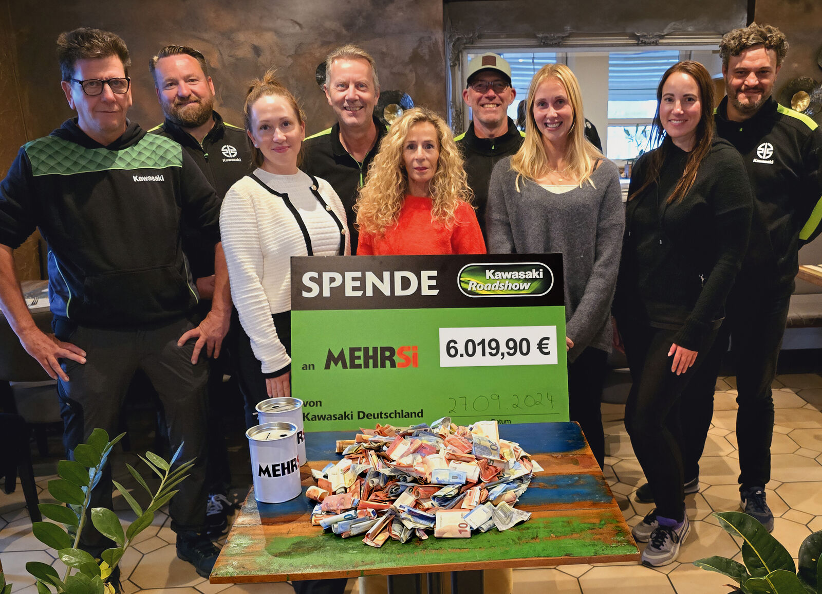 Die Kawasaki Roadshow-Teams haben auch in diesem Jahr wieder Geld für die gemeinnützige Organisation MEHRSi gesammelt, die sich für mehr Sicherheit im Straßenverkehr für Motorradfahrer einsetzt. Über 6.000 Euro wurden durch Probefahrten auf Kawasakis aktuellen Modellen für den Unterfahrschutz von Leitplanken gespendet. Seit 2020 sind damit fast 30.000 Euro zusammengekommen, die zur Verbesserung der Sicherheit von Motorradfahrern beitragen.