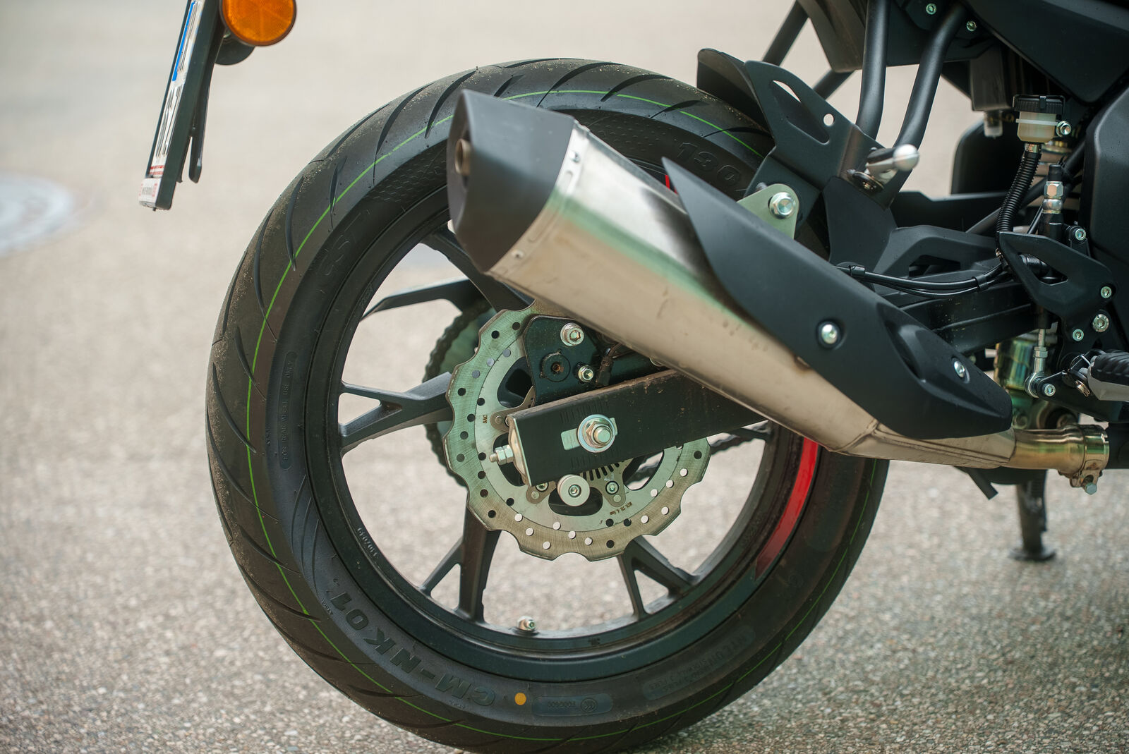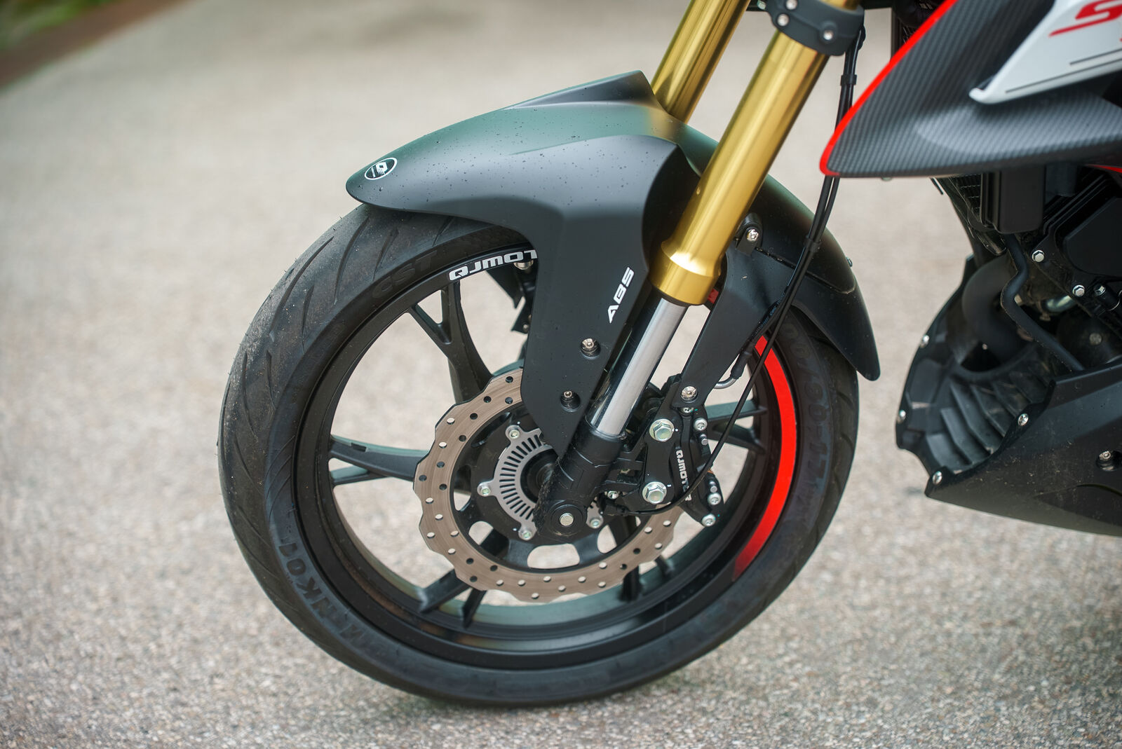 Die Bremsen der QJ Motor SRK 125 S 2025, ausgestattet mit gelochten Bremsscheiben und einem ABS-System, bieten insgesamt eine solide Bremsleistung. In Tests wurde jedoch festgestellt, dass das Bremsfeedback verbessert werden könnte, was durch den Austausch der Bremsbeläge leicht zu erreichen ist.